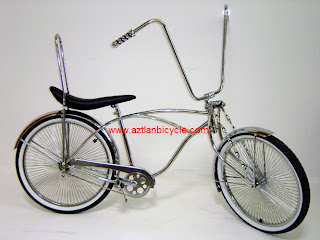 Ok so today I spent 3 hours with moving guys and moved MsE's stuff from a 10x30 storage unit to a 10x10 unit saving $300 a month.  After weeks of moving boxes, and opening boxes looking for things, and getting rid of stuff -- I can now write it off until who knows when.  Anyway I'm not touching that thing until necessary.  But the funny story from today is that the hispanic moving guy REALLY wanted my old banana bike from when I was 8.  He wanted to turn it into a low rider beauty.  Shine up the chrome.  Put some big white-wall tires with 100 spoke wheels.  A better seat of course (he wasn't partial to the pink and white daisy's) and you'd have a low rider beauty, that might look something like this . . .
